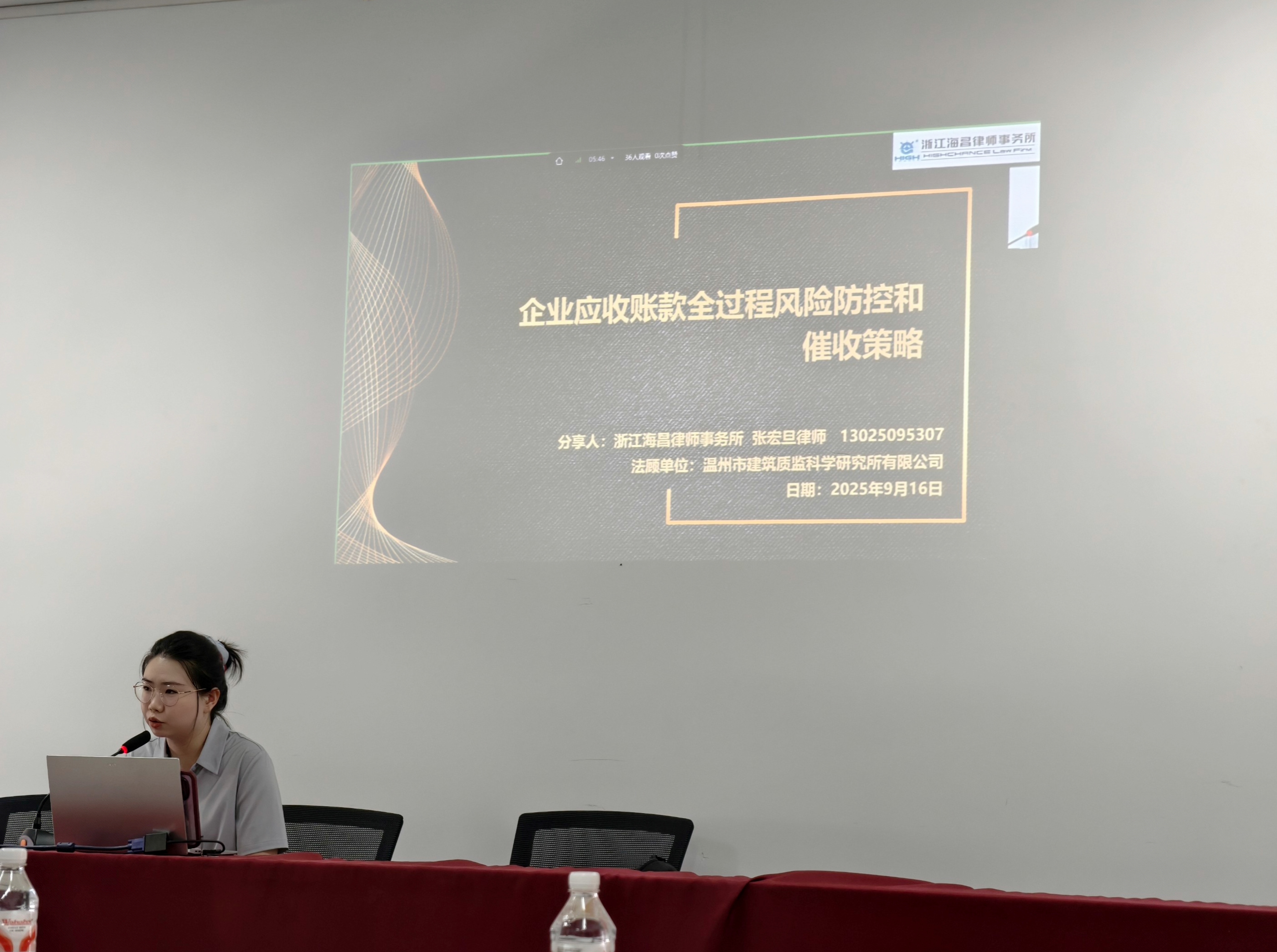 海昌动态|张宏旦律师应邀为温州市建筑质监科学研究所有限公司开展《企业应收账款全过程风险防控和催收策略》专题培训